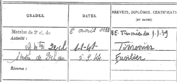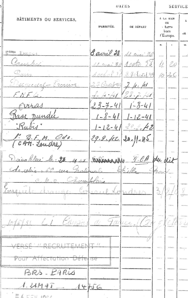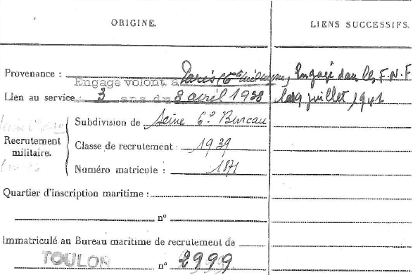 Engagement FNFL le 7 avril 1941 (référence fiche matricule)