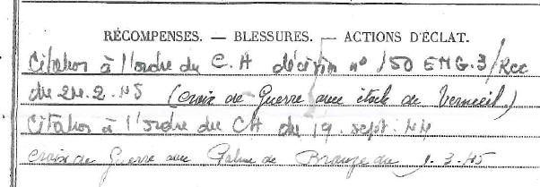 En novembre 1944, il reçut une citation de bravoure en Hollande.