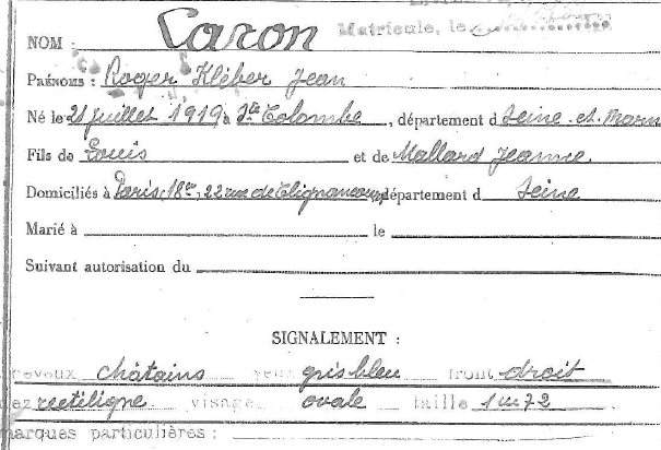 Né le 21 juillet 1919 à SAINTE COLOMBE ( Seine et Marne - 77) - Décédé le 6