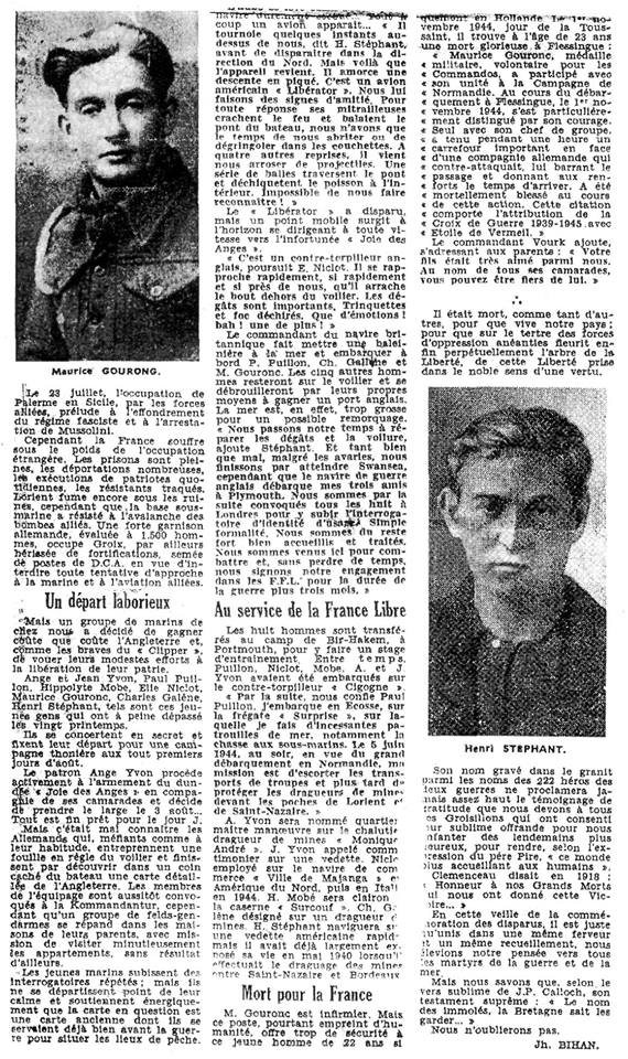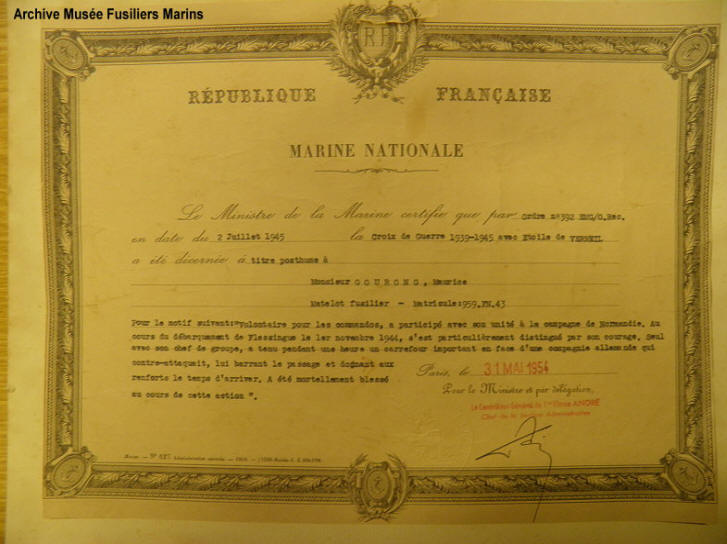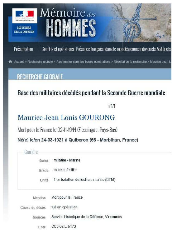 Né le 24 mars 1921 à QUIBERON (Morbihan) - Décédé le 2 novembre 1944 à