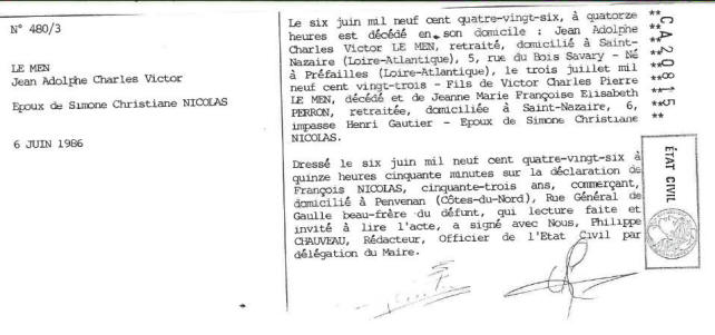 Décédé le 6 juin 1986 à Saint Nazaire (Loire Atlantique)