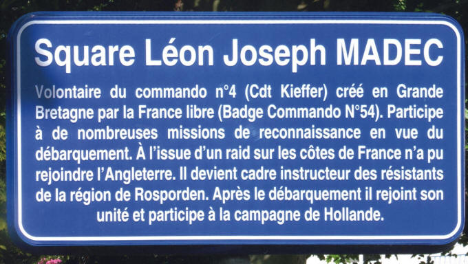 Plaque à Concarneau posée en 2015 (avec une erreur de n° de badge