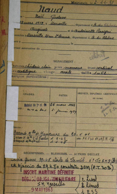 Après-guerre, Noël Naud revient à Marseille où il reprend son métier de