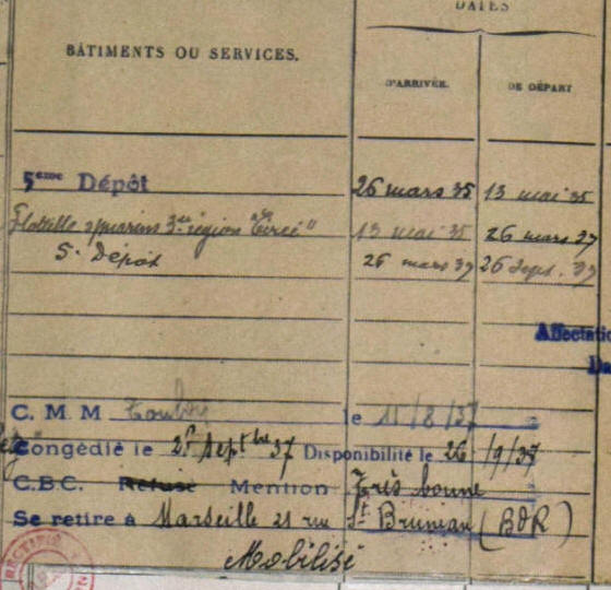 1935 il est appelé sous les drapeaux au 5ème dépôt des équipages,