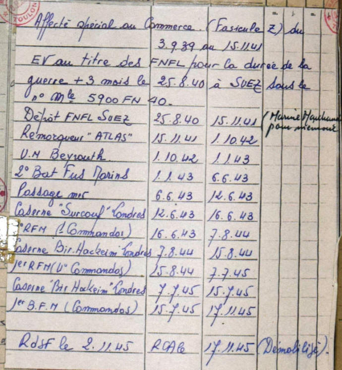 Début octobre 1942 il rejoint Marine Beyrouth à la DP (direction du port
