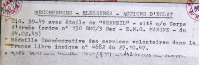 En mars 1943 il intègre le 2ème BFM, qui ne tardera pas à rejoindre