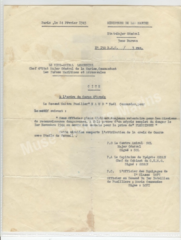 Noel Naud , comme une partie de ses camarades du 2ème BFM , décide de