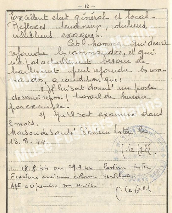 Pasteur Lister jusqu'au 29 septembre 1944.