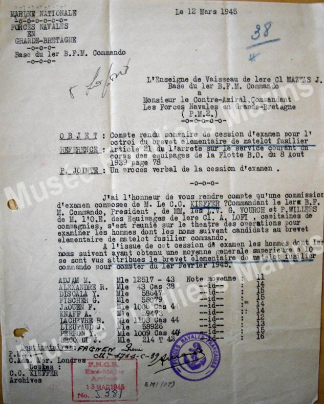 Matelot fusilier commando, brevet élémentaire, pour compter du 1er