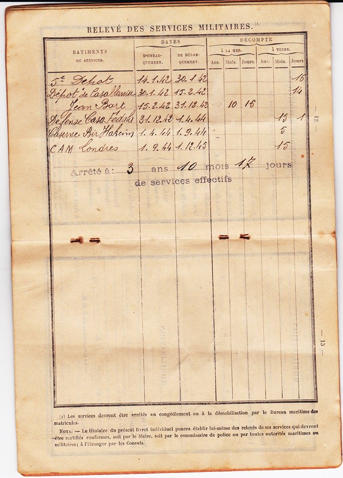 Dépôt de Casablanca du 30 janvier 1942 au 15 février 1942