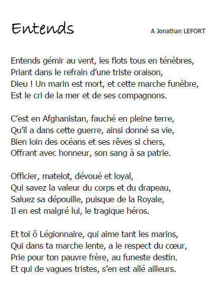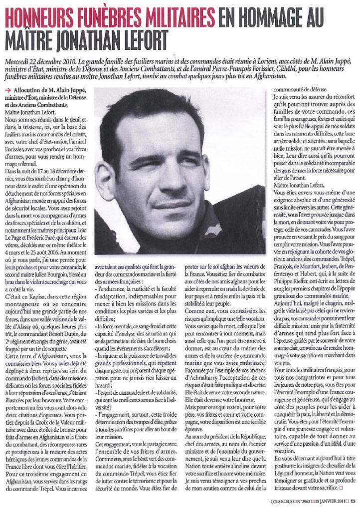 Cérémonie d'obsèques du maitre Jonathan Lefort présidée par M.Alain