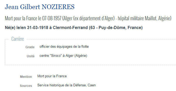 CLERMONT-FERRAND (Puy de Dôme) - Décédé le 7 août 1957 à ALGER,