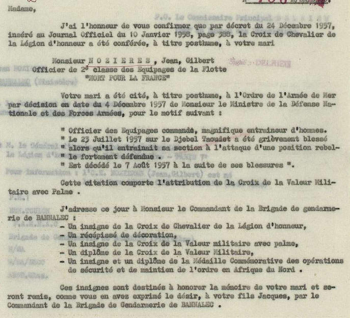 23 juillet 1957 sur le Djebel Taoudet a été grièvement blessé alors