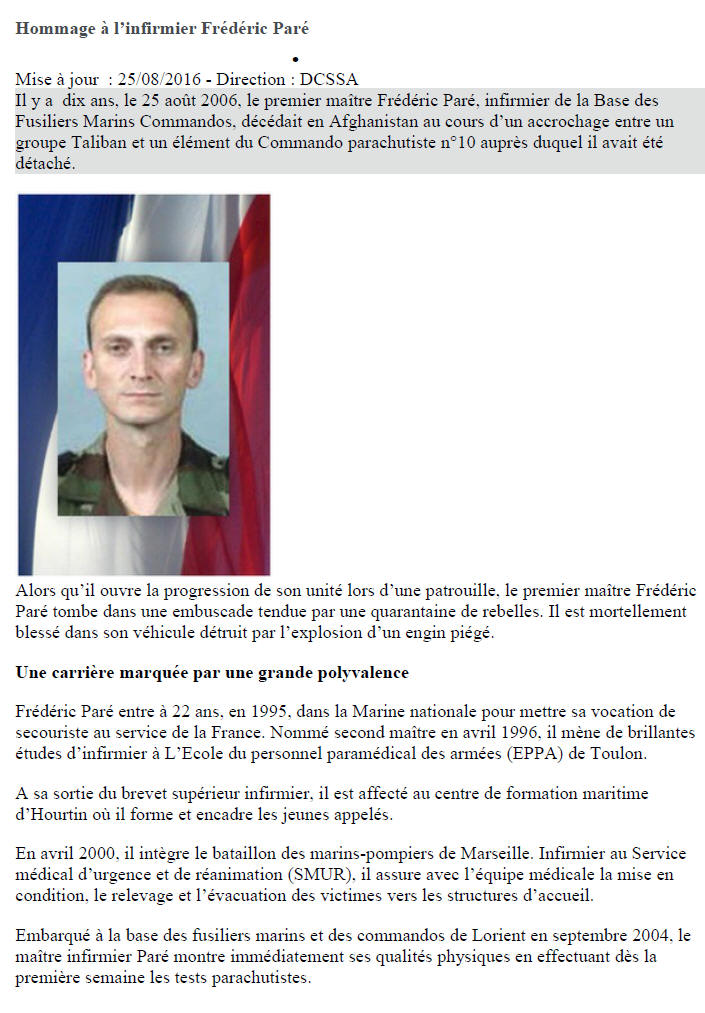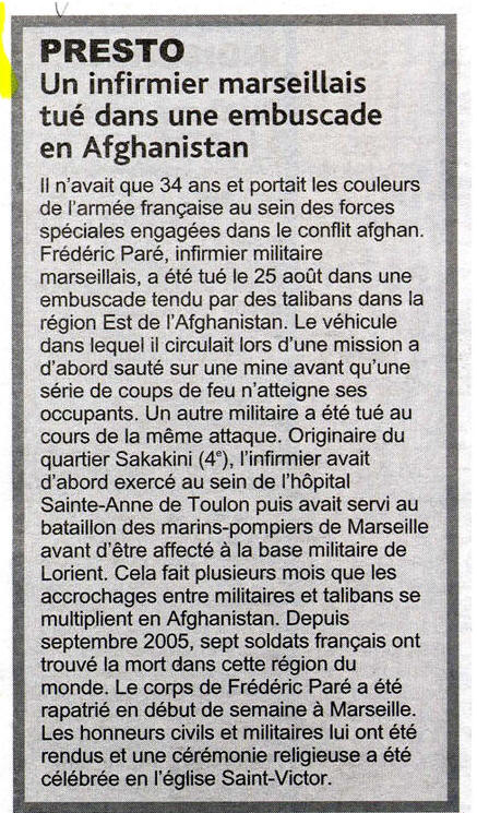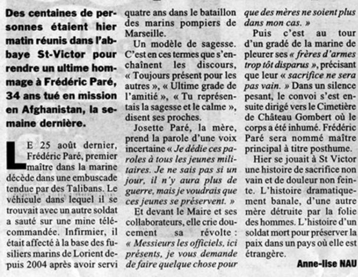Lorient, il avait été fauché dans une embuscade alors qu'il tentait
