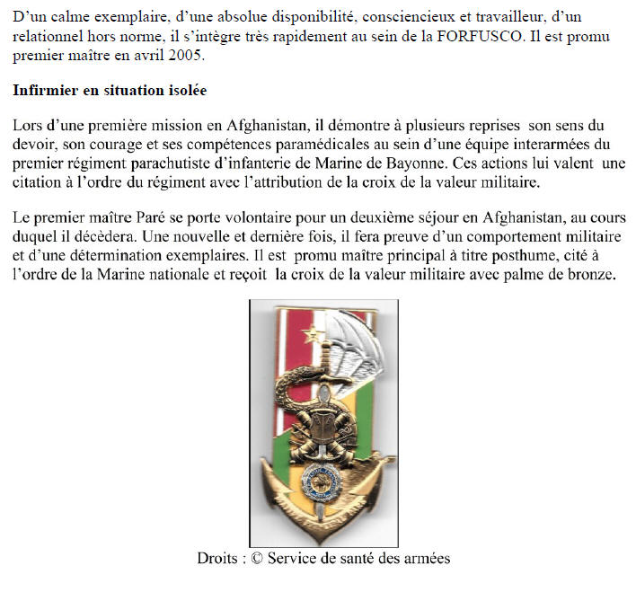 Marine nationale et reçoit la croix de la valeur militaire avec