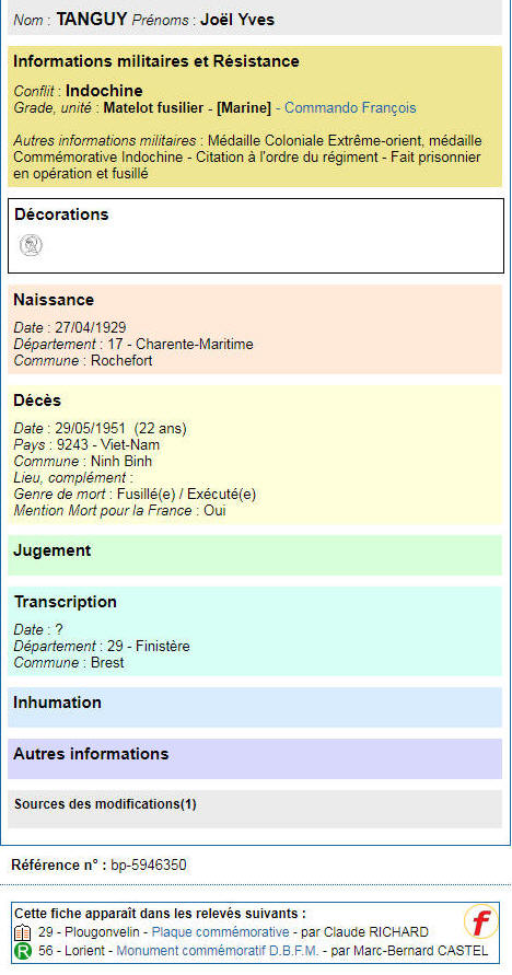 Né le 27 avril 1929 à ROCHEFORT (Charente maritime) - Décédé le 29