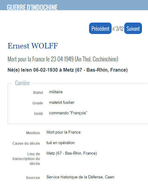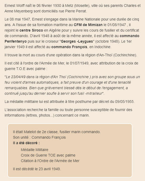 Un cours porte son nom à l'Ecole des Fusiliers Marins du 15 mars au