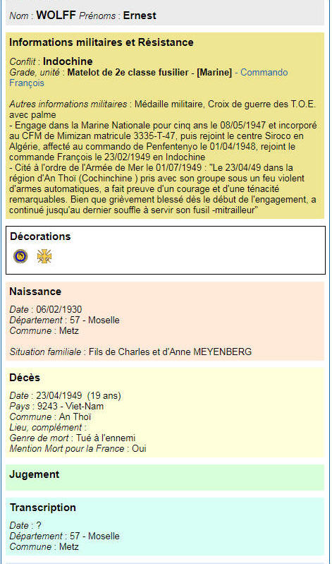 Né le 6 février 1930 à METZ (Bas-Rhin) - Décédé le 23 avril 1949 à