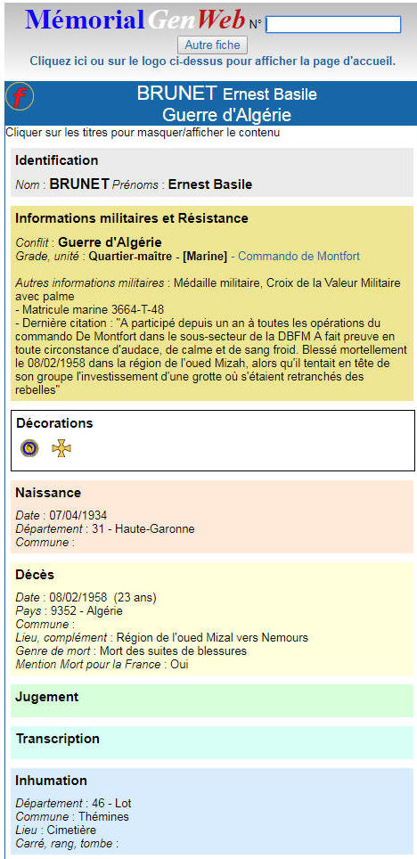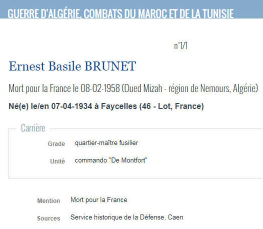 FAYCELLES (Lot) - Décédé le 8 février 1958 à OUED MIZAH, region de