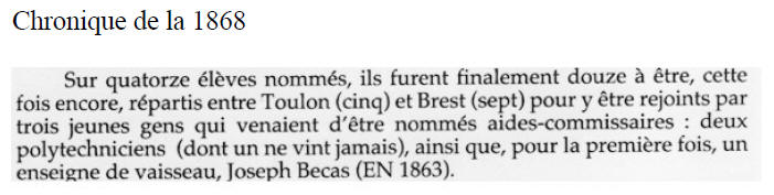 Sont nommés élèves commissaires en 1868, mais ne rallient pas : MARAS et DECOMBLE.
