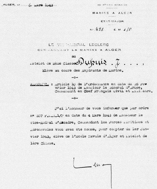 l'amiral Darlan. Une vingtaine d'élèves y furent admis, candidats