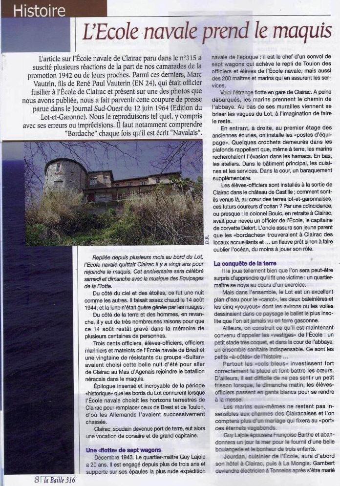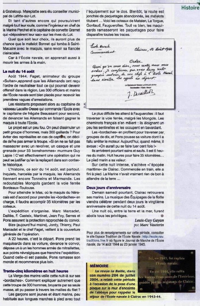 - L'Ecole Navale à Clairac /Lien