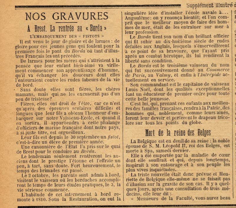 vaisseau-Ecole Navale, de 1892 à 1894. Ce dernier Borda, souvenir et