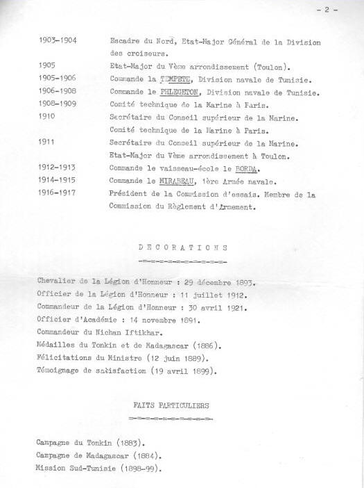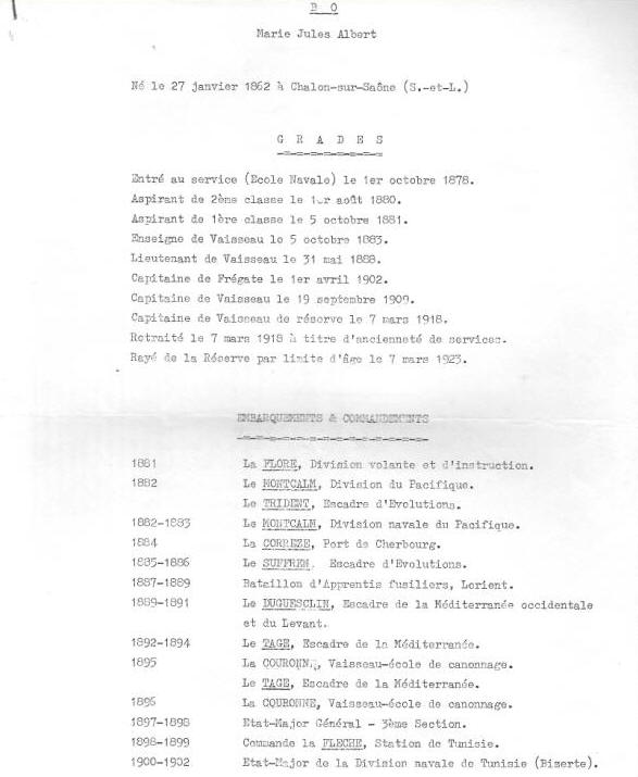 1883 à l'Ecole Navale, il est en 1887 mis en réserve à Toulon,