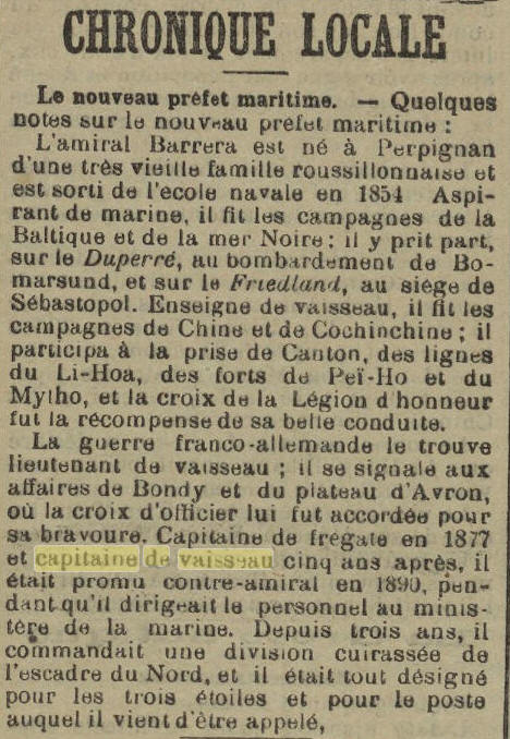 à 1889, il est à Brest, commandant le Borda où il reçoit la croix de