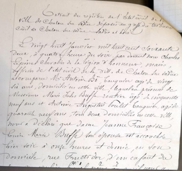 le 27 janvier 1862 à CHALON-sur-SAÔNE (Saône-et-Loire) - Décédé en