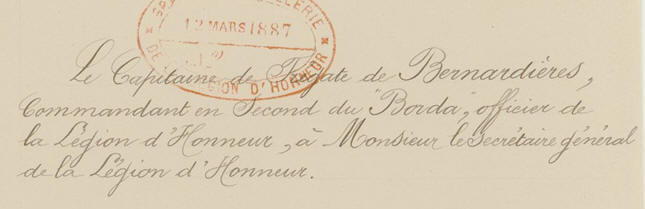 Officier de la Légion d'Honneur le 11 décembre 1886, étant à bord du