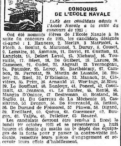 Extrait Ouest-France / 6 septembre 1923