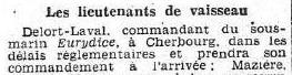 Commandant du sous-marin Eurydice (Cherbourg) en 1935.