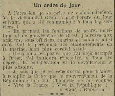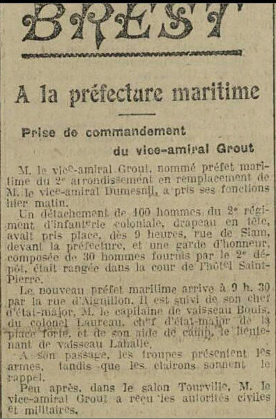inauguré par le contre-amiral GROUT, alors commandant de la Division