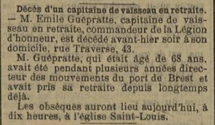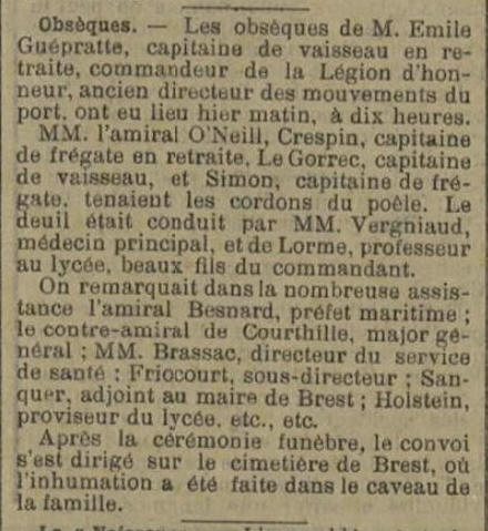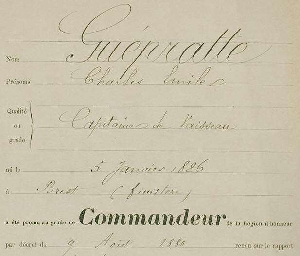 août 1880, Commandant la "FAVORITE" à BREST, son fils Émile, y est