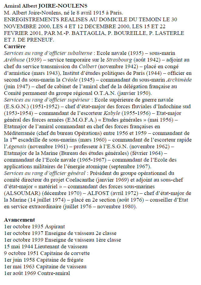 L’amiral Albert Joire-Noulens est décédé le 3 juillet 2010. Il avait
