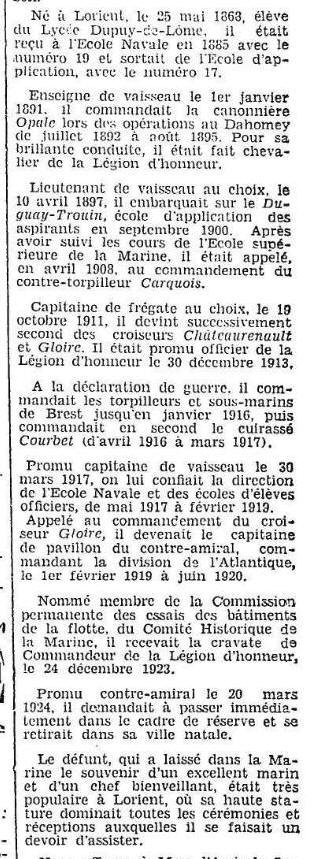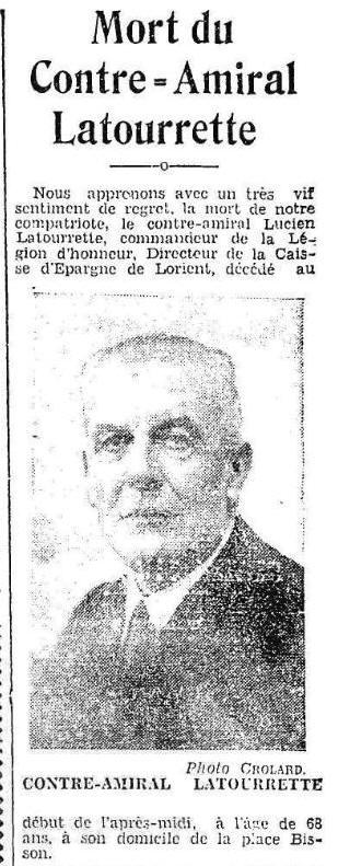 Né le 25 mai 1868 à LORIENT (Morbihan) - Décédé le 15 janvier 1937 à