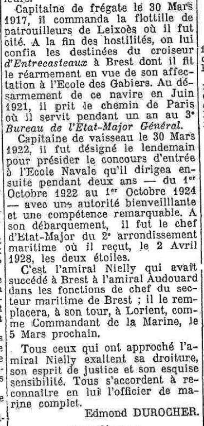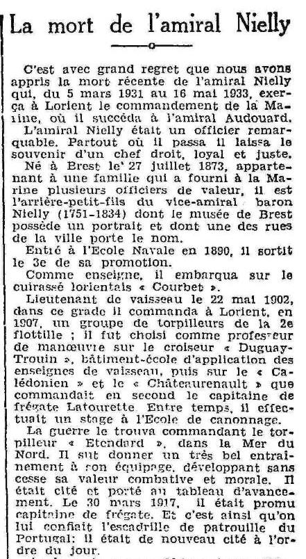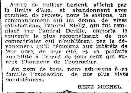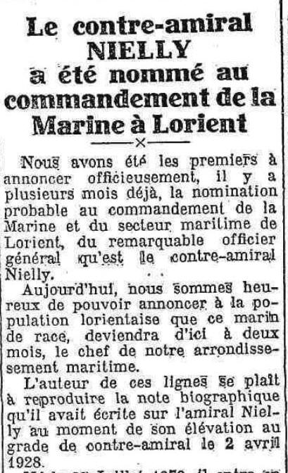 Commandant la marine à Lorient 1931-1933
