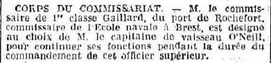 Au 1er janvier 1902, Aide de camp du Contre-amiral Léonce CAILLARD, Commandant la Marine en ALGÉRIE.