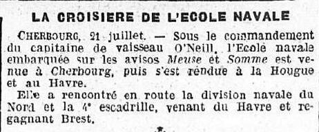 Le 14 août 1910, Commandant le contre-torpilleur "CAVALIER",