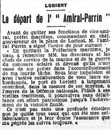 15 octobre 1913, Préfet maritime du 3ème arrondissement à LORIENT.
