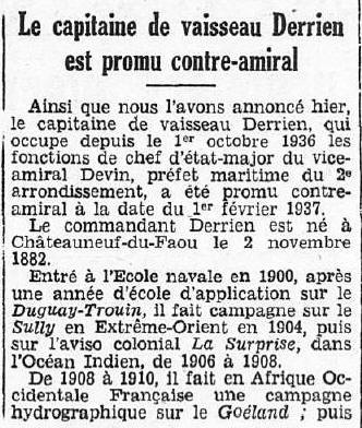 LORIENT. Il commande ensuite le "REGULUS" à TERRE-NEUVE". En février