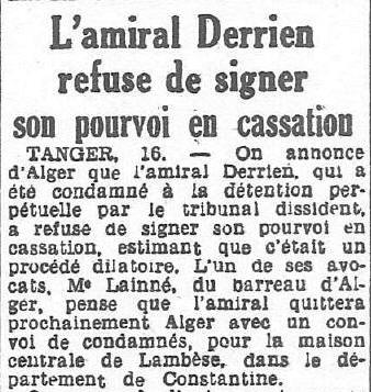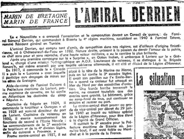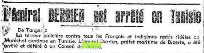 d'avoir livré le port de Bizerte aux allemand, est traduit devant le