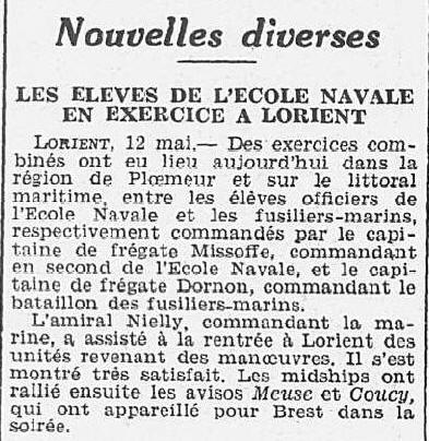 ensuite le torpilleur "ÉPERVIER". En octobre 1936, sur le croiseur