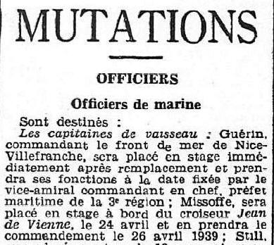1949 : M. LE VICE-AMIRAL MISSOFFE (JACQUES-MARIE) EST MIS A LA
