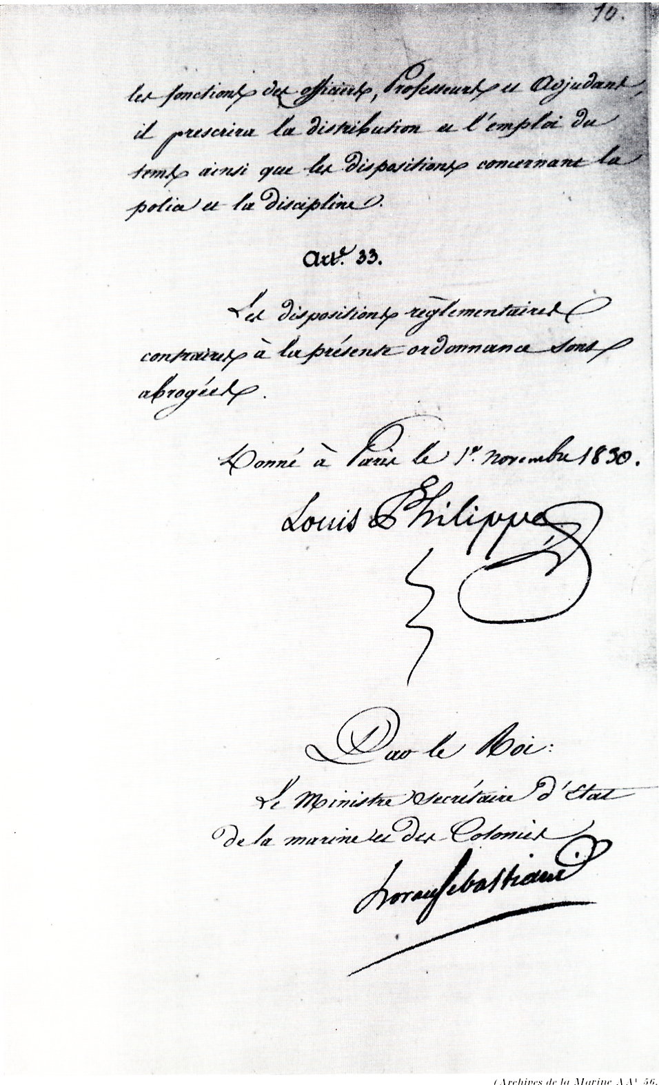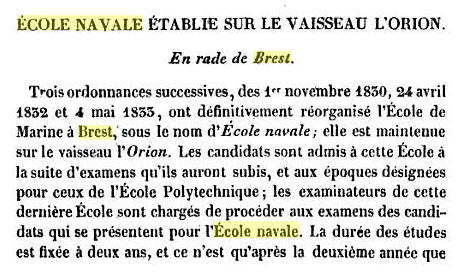installé sur l’Orion prit le nom d’École navale, tandis que le 7