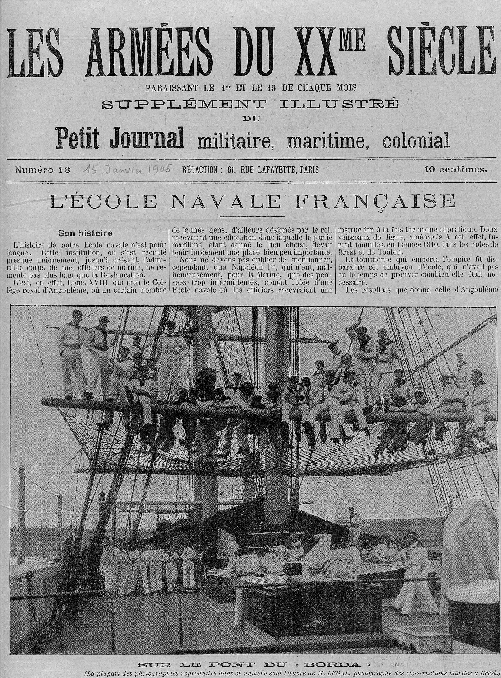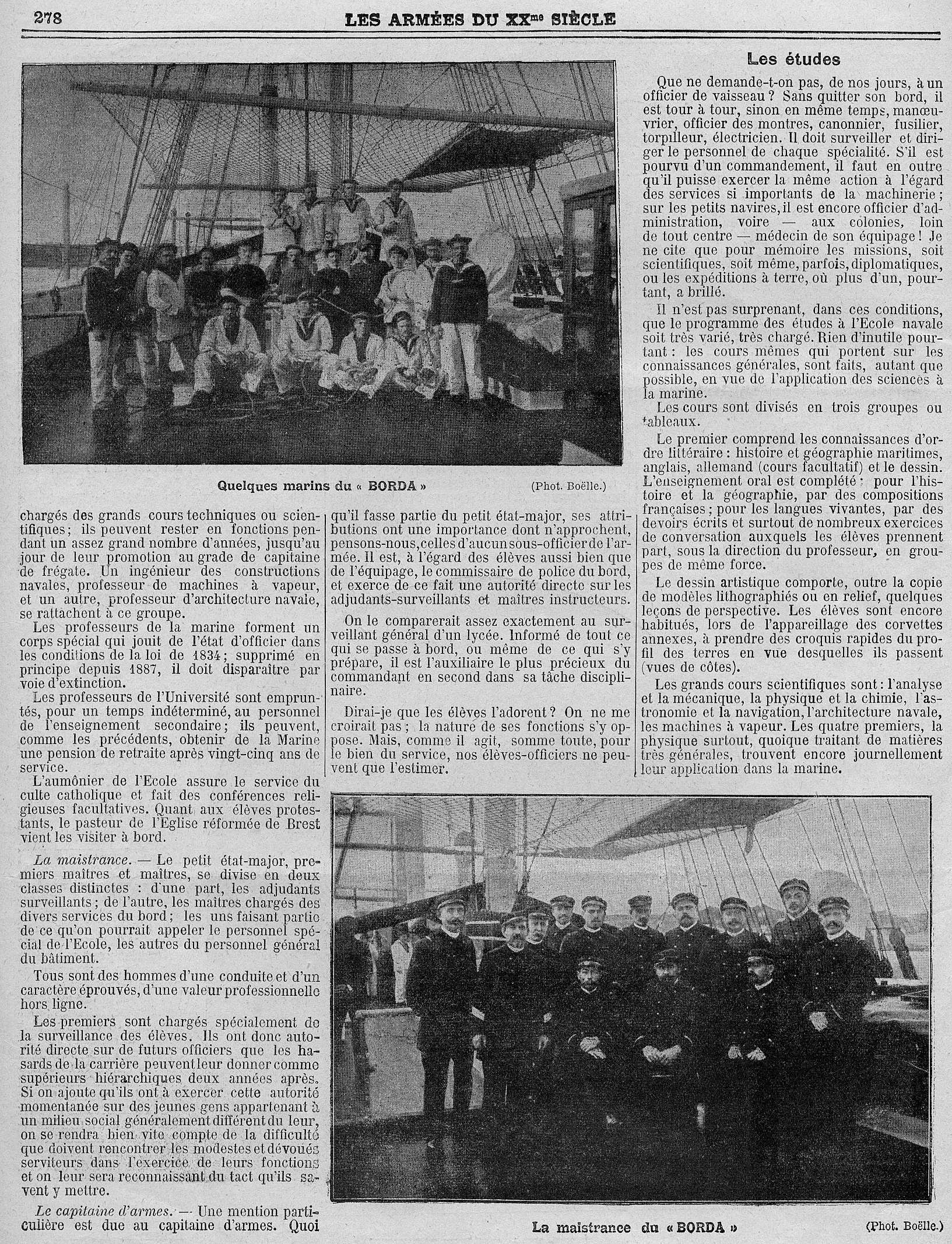 Journal du dimanche n° 248 du 24 août 1913 p. 541 : Le Borda et la vie de l'école des futurs Officiers de marine