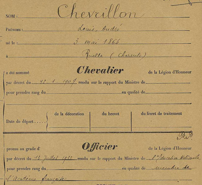 André Chevrillon fut élu à l’Académie française, le 3 juin 1920, au