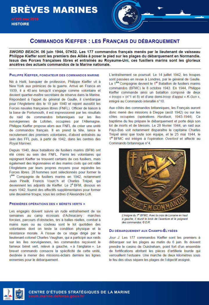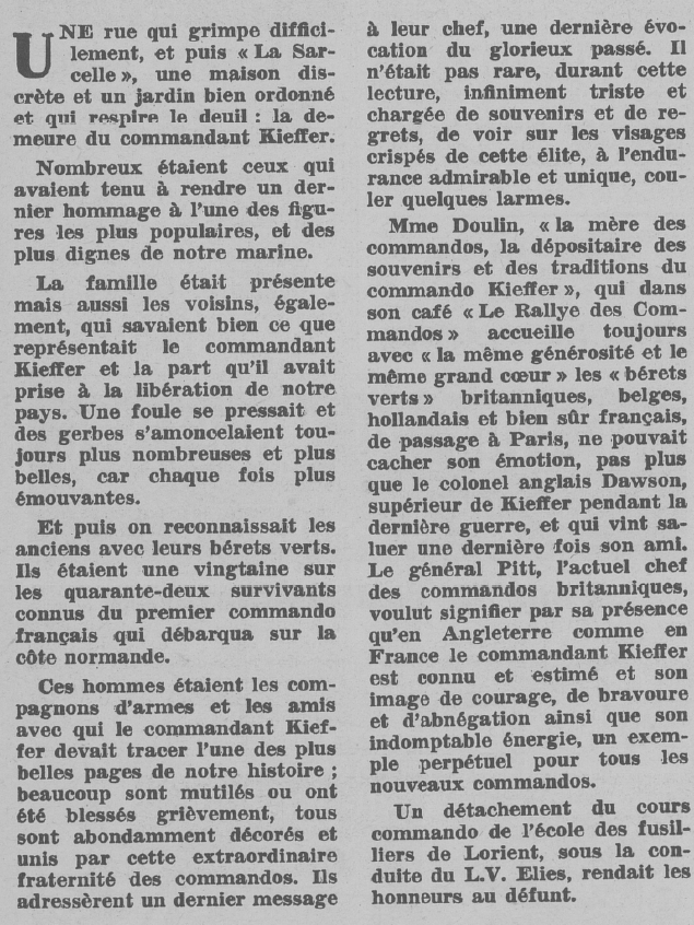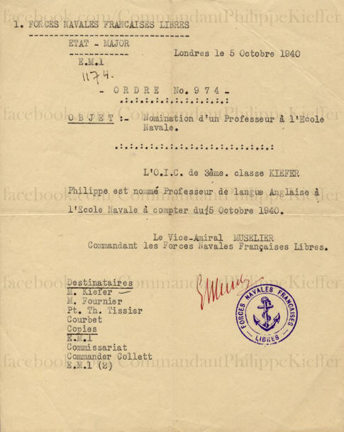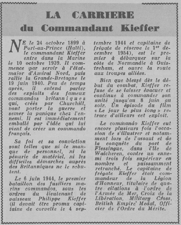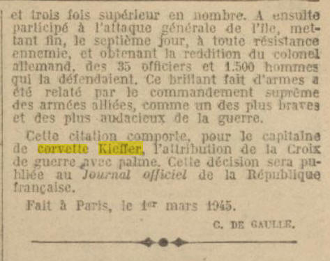 avoir connu Dunkerque, le capitaine de frégate Kieffer rejoint les