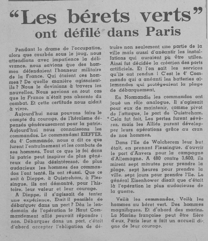 commandos de marine, qui sont devenus les fameux Bérets verts. Après